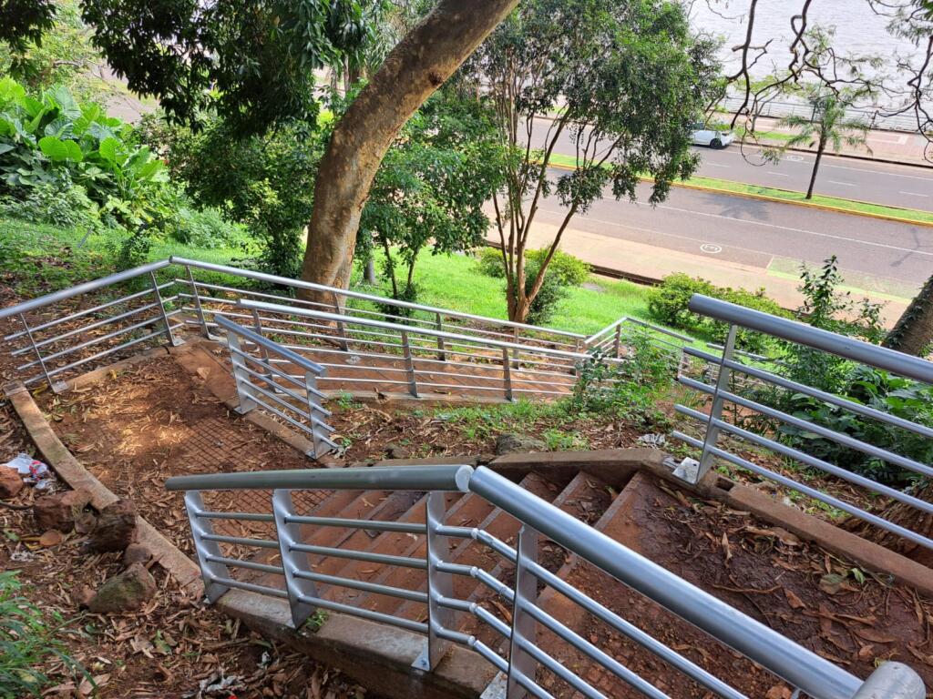 Por otro lado, avanzan las tareas para contribuir con la seguridad y el disfrute de los visitantes. En este marco, la Municipalidad comenzó con la instalación de barandas a lo largo del costado del Anfiteatro. Luego de la colocación de esta infraestructura en la escalinata “Cascada Urbana” de la Costanera, se está continuando con esta tarea en los laterales del emblemático escenario de nuestra ciudad.